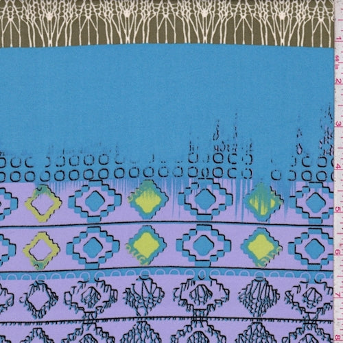 Lilac/Olive/Cream Deco Stripe Crepe Georgette Fabric