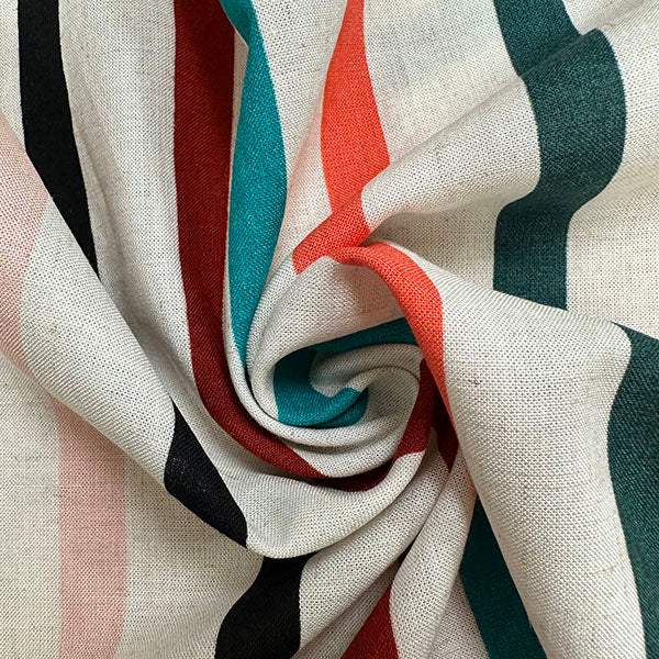 Natural Rayon Multi Color Print Stripe Shirting Fabric