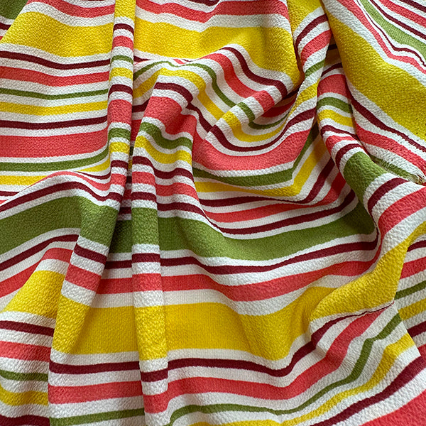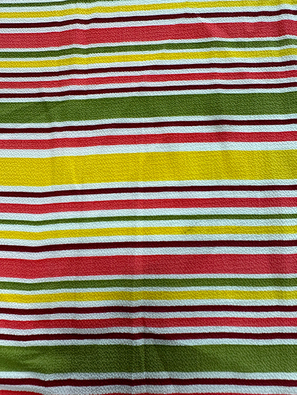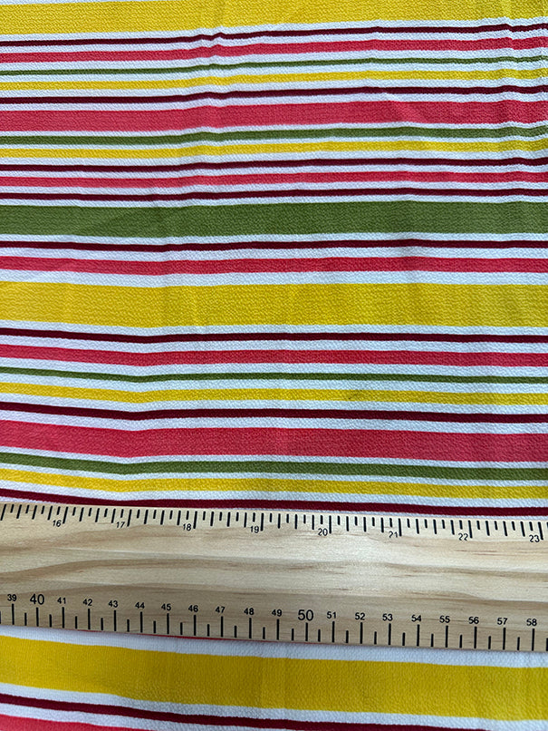 -Pink-Red-Green Stripe Crepe Georgette Fabric