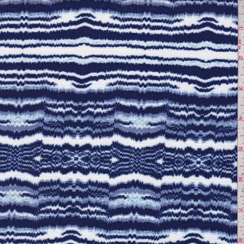 White/Sapphire Seismic Stripe Dobby Crepe Fabric