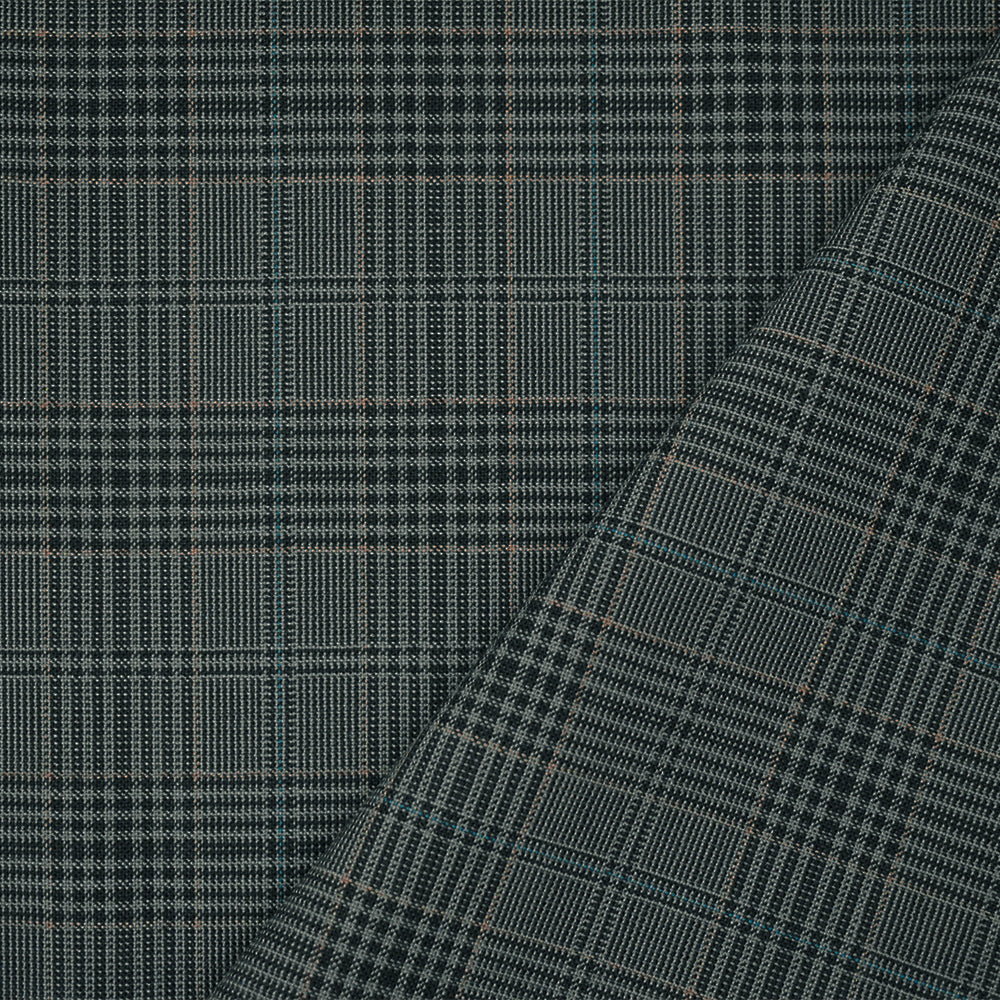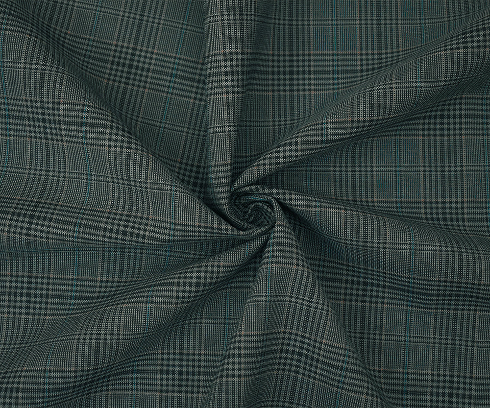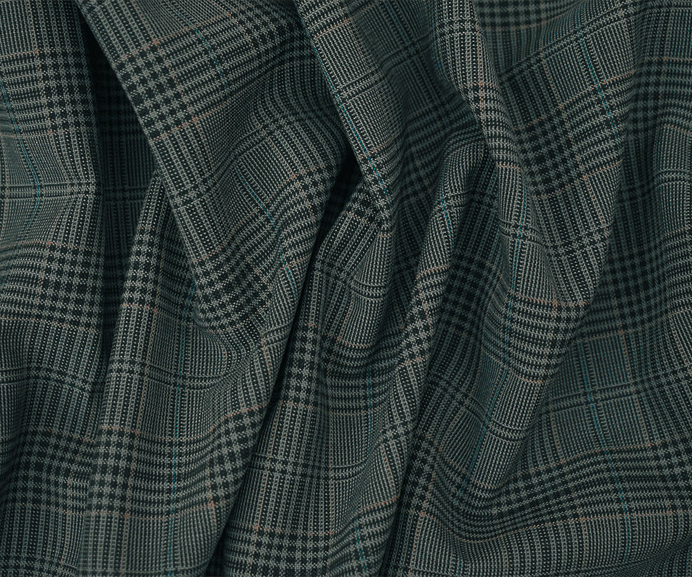 Black-Gray-Multi Wool Polyester Plaid Woven Shirting Fabric