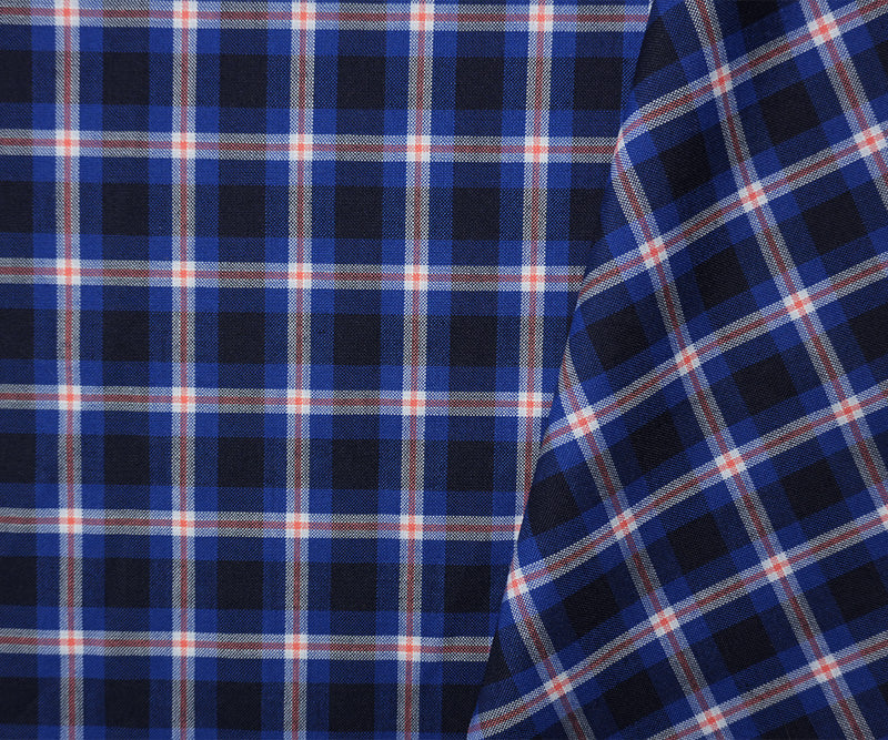 Blue-White-Orange Poly Wool Plaid Woven Shirting Fabric