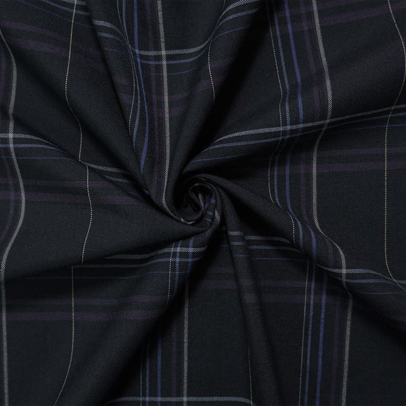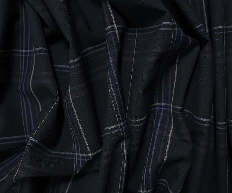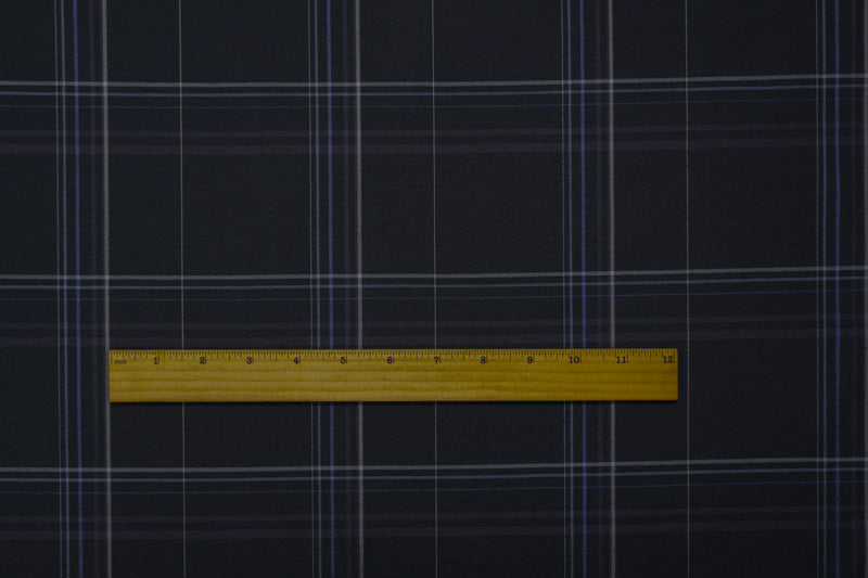 Deep Blue-Multi Poly Wool Plaid Woven Japanese Shirting Fabric
