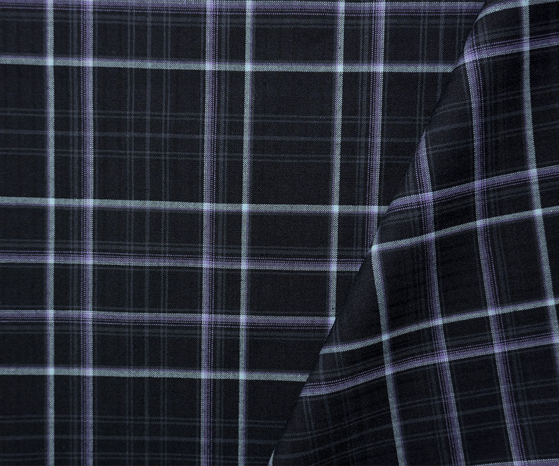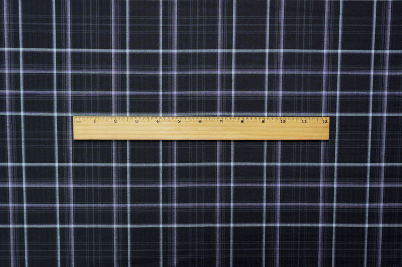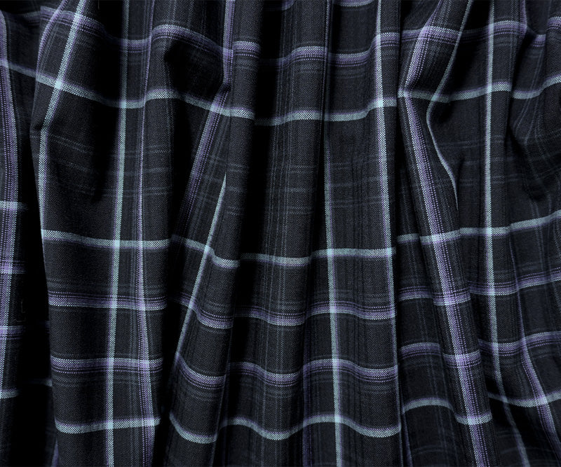 Deep Blue-Purple-Multi Poly-Wool Plaid Woven Shirting Fabric