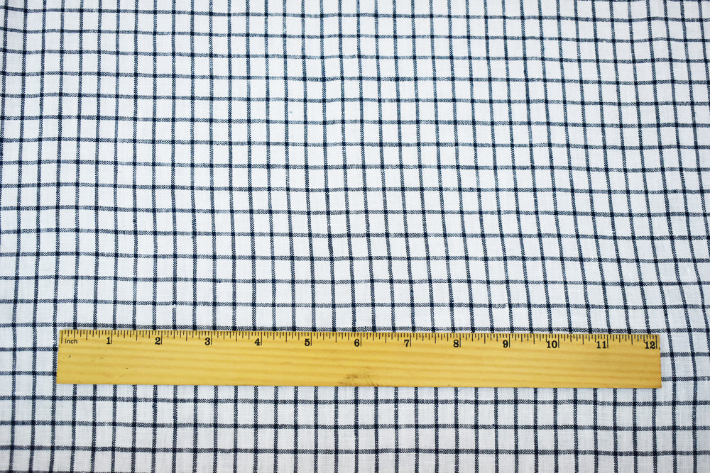 Deep Blue-White Moygashel Washed Grid Check Irish Linen Woven Fabric