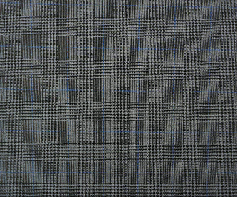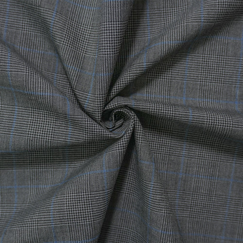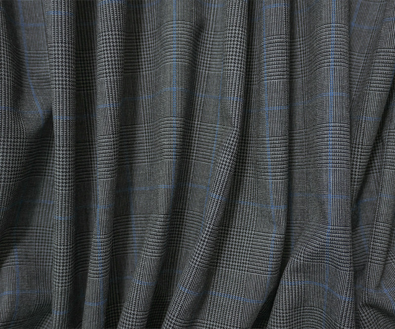 Gray-Black-Blue Poly Wool Plaid Woven Shirting Fabric