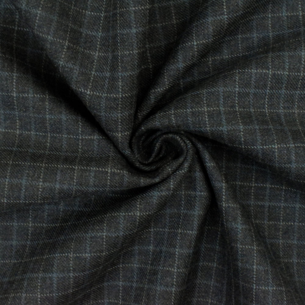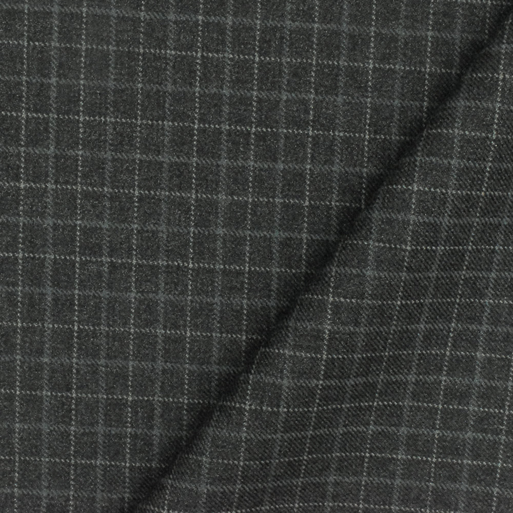 Gray-Multi Check Wool Polyester Twill Woven Suiting Fabric