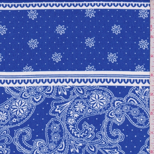 Royal/White Paisley Stripe Crinkled Crepe Fabric