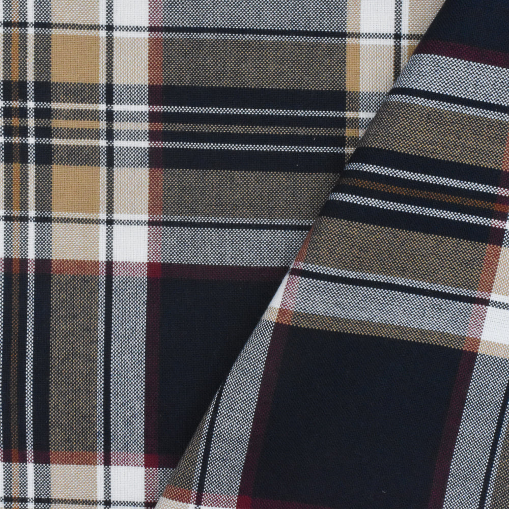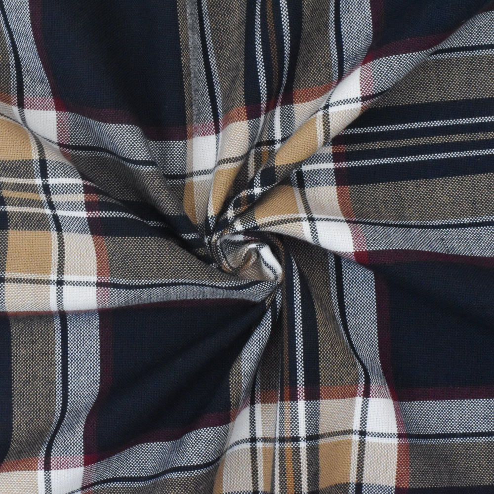School Beige-Blue-Multi Plaid Poly Madras Woven Suiting Fabric