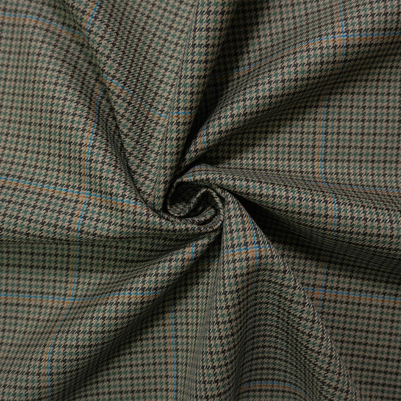 Taupe-Green-Multi Wool Poly Houndstooth Twill Woven Suiting Fabric