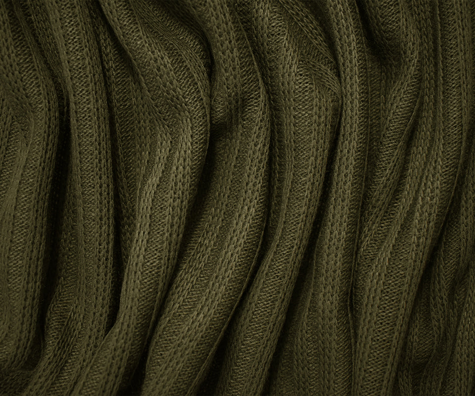 Green Acrylic Wool Sweater Rib Knit Fabric