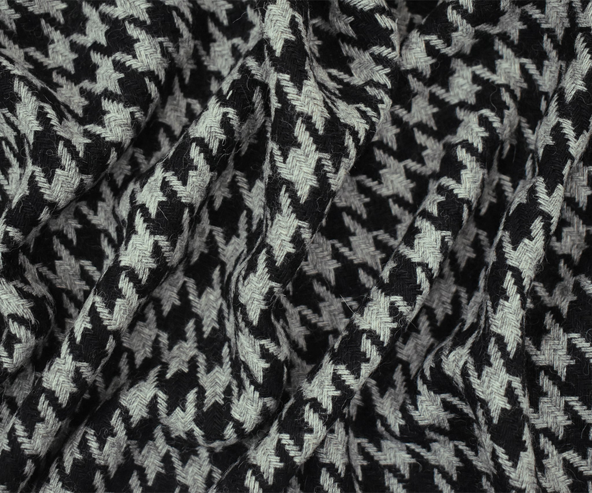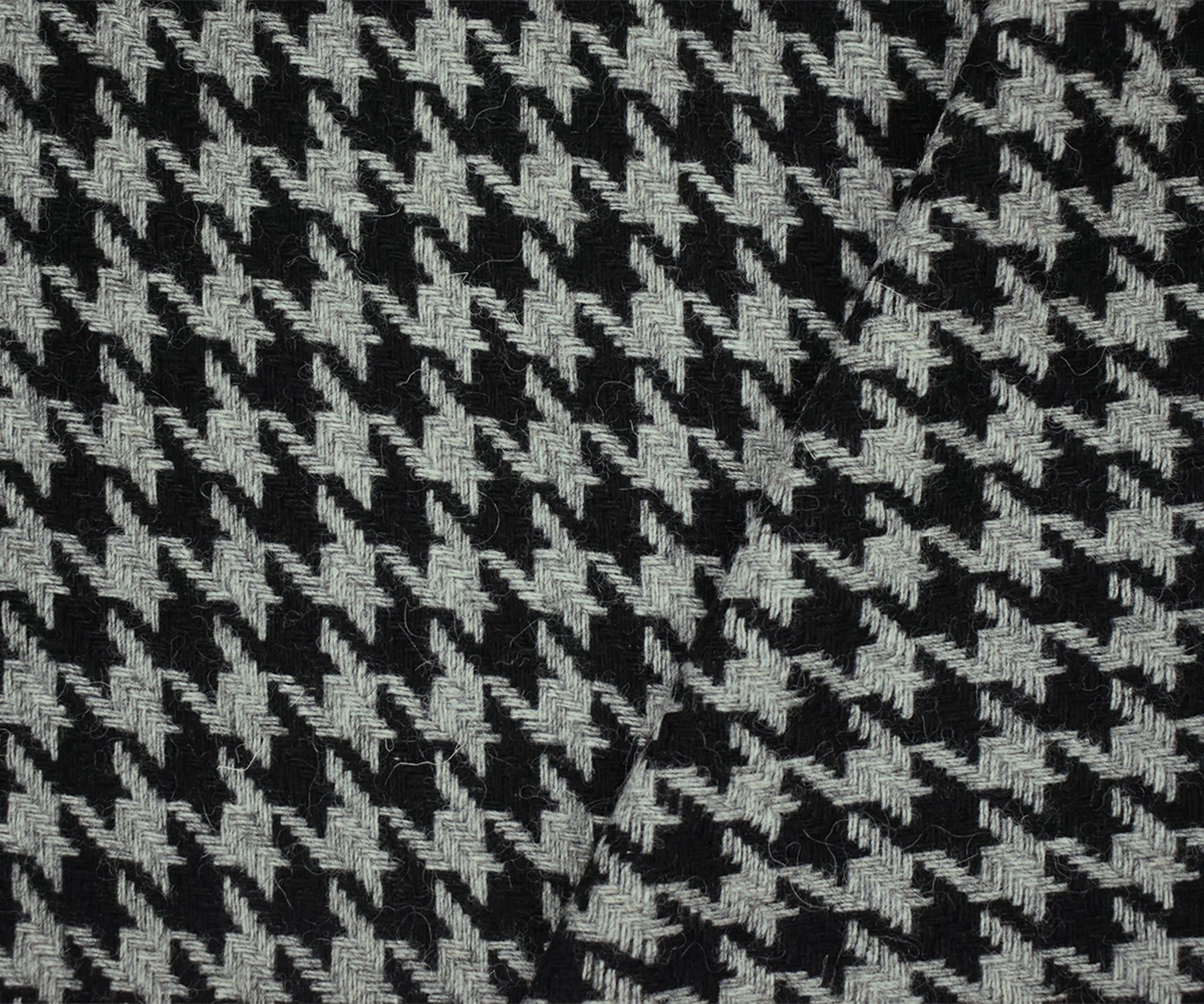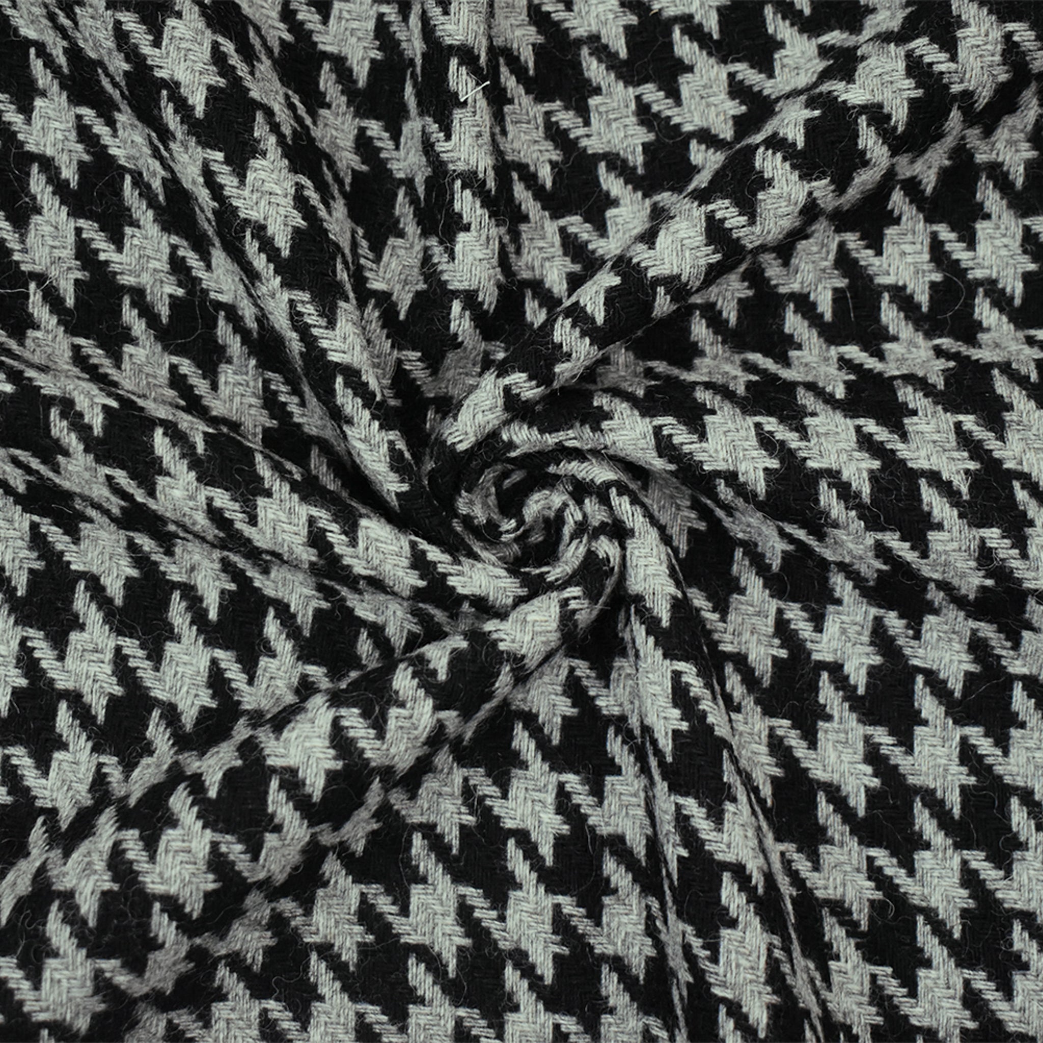 Black-Gray Wool-Polyester Houndstooth Woven Jacketing Fabric