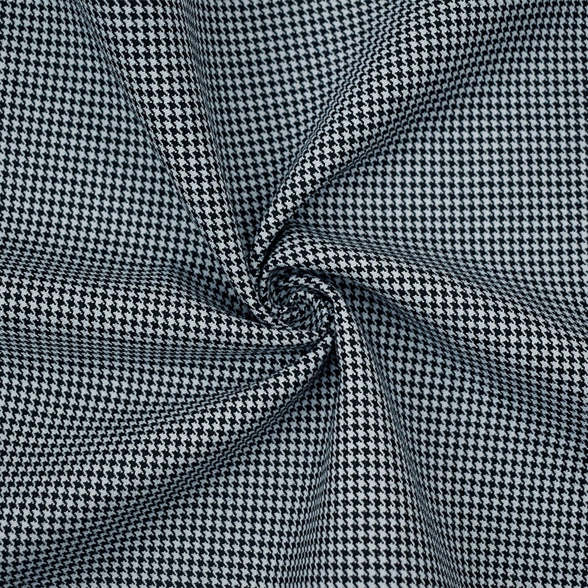 Black-Light Blue Wool-Polyester Houndstooth Woven Suiting Fabric