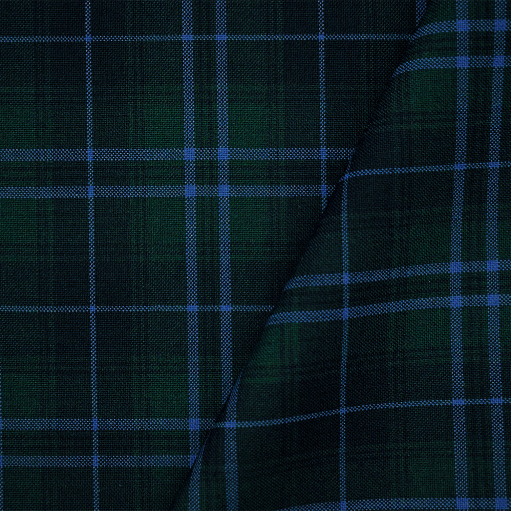 Blue-Green-Multi Poly Wool Plaid Check Shirting Woven Fabric