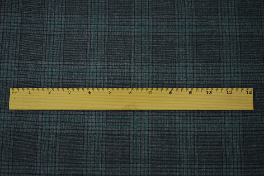 Gray-Black-Green Polyester Wool Blend Plaid Woven Shirting Fabric