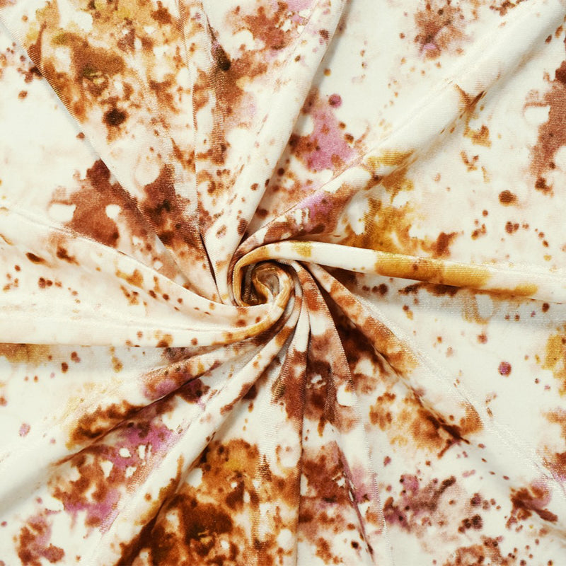 -Plush velvet knit with a soft tie-dye print pattern. The poly-spandex blend ensures smooth stretch and reliable recovery. Features a dense, luxurious pile that offers both warmth and drape for stylish, comfortable garments.