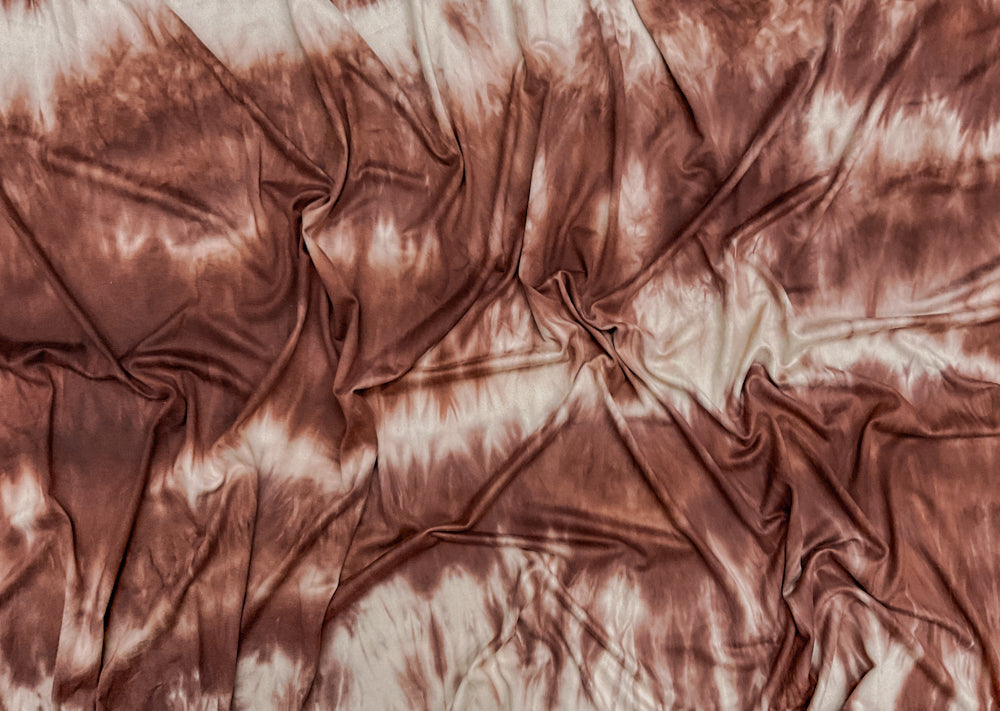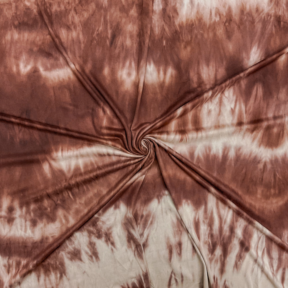 Brown-Beige Poly Stretch Spandex Tie Dye Double Brushed Jersey Knit Fabric