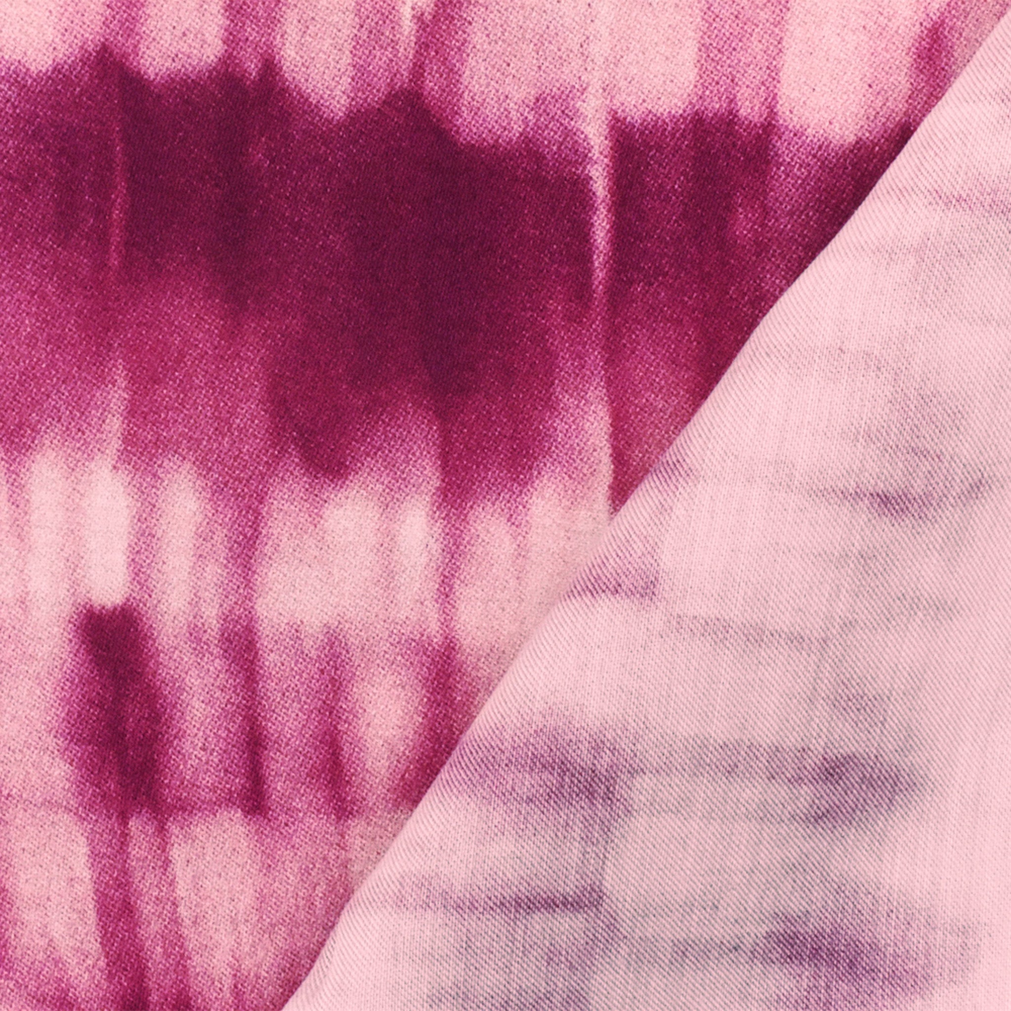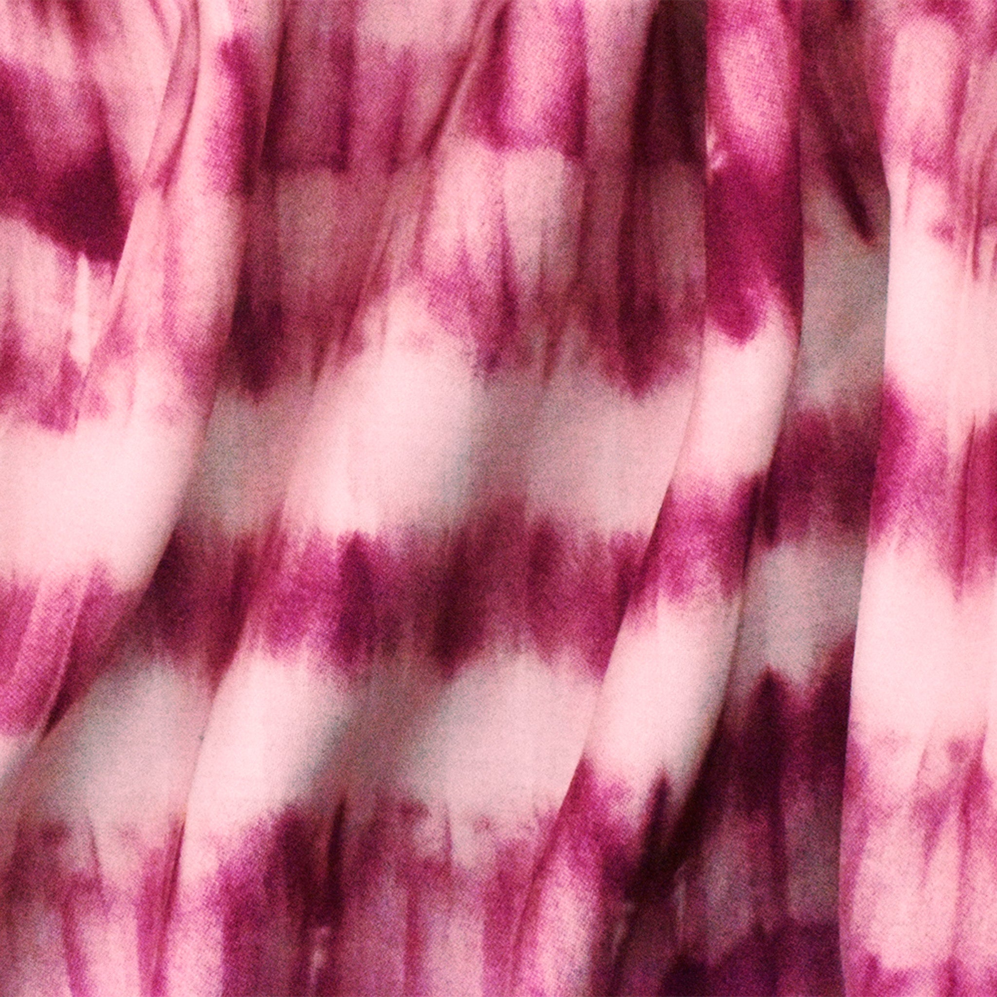 -100% viscose twill satin-like woven fabric printed with a tie dyed tie-dye pattern. Made in Italy.