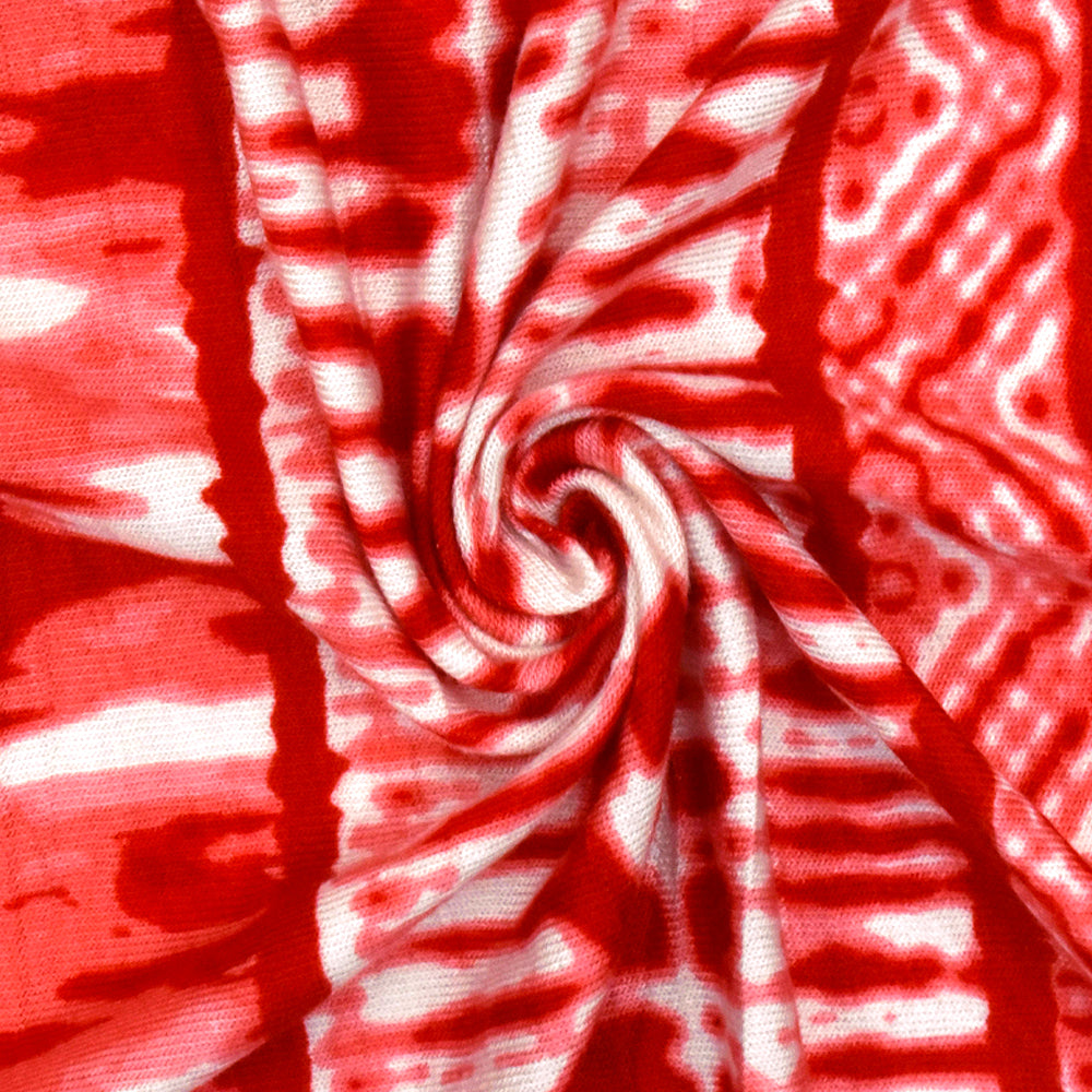 -Low luster tie dye and Aztec stripe printed stretch jersey knit fabric