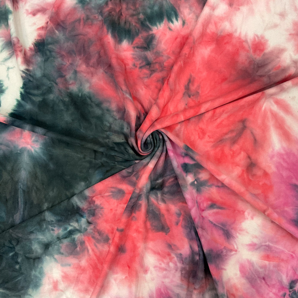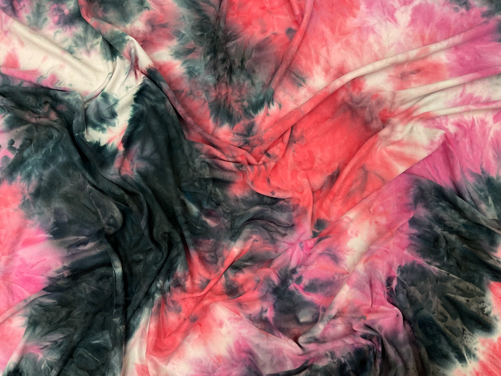 Pink-Multi Poly Stretch Spandex Tie Dye Double Brushed Jersey Knit Fabric