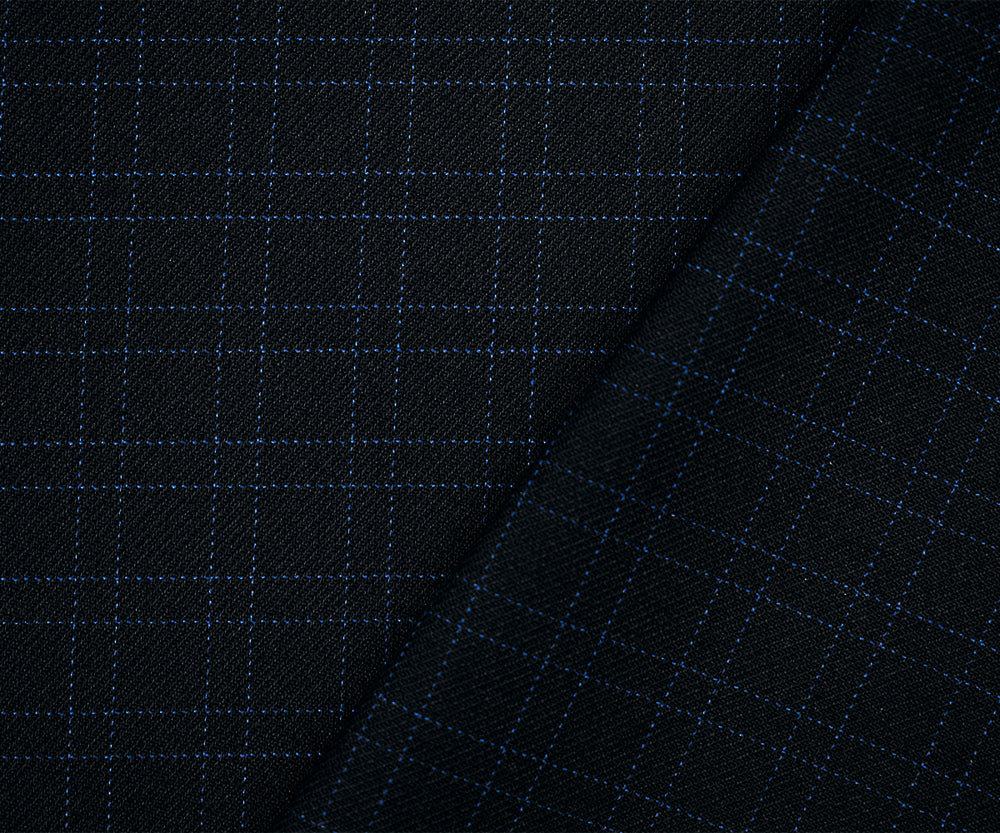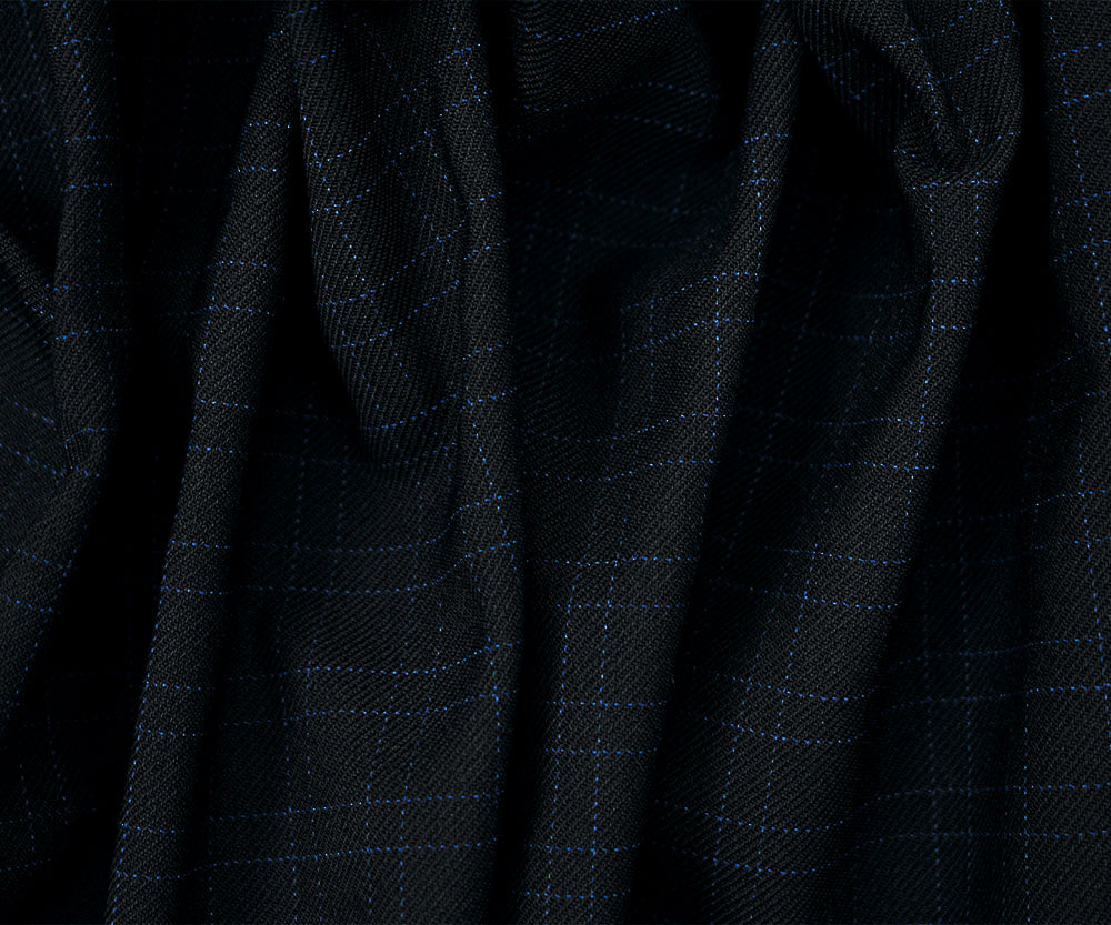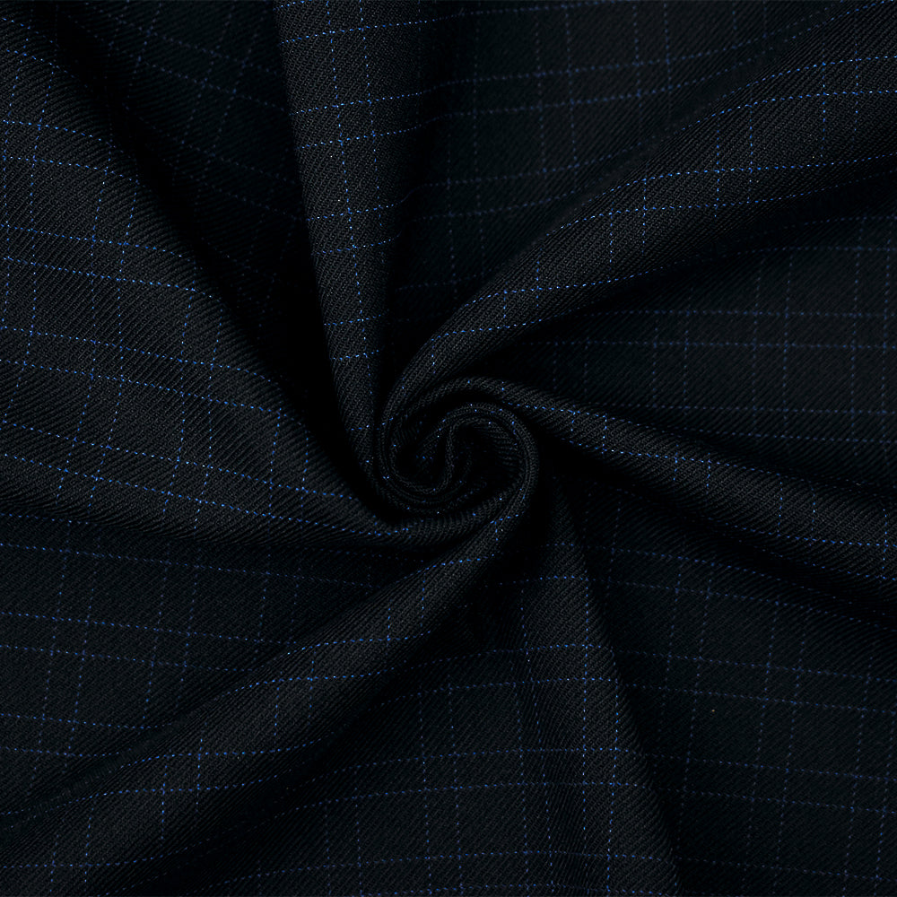 Black-Blue Polyester Check Plaid Twill Woven Fabric