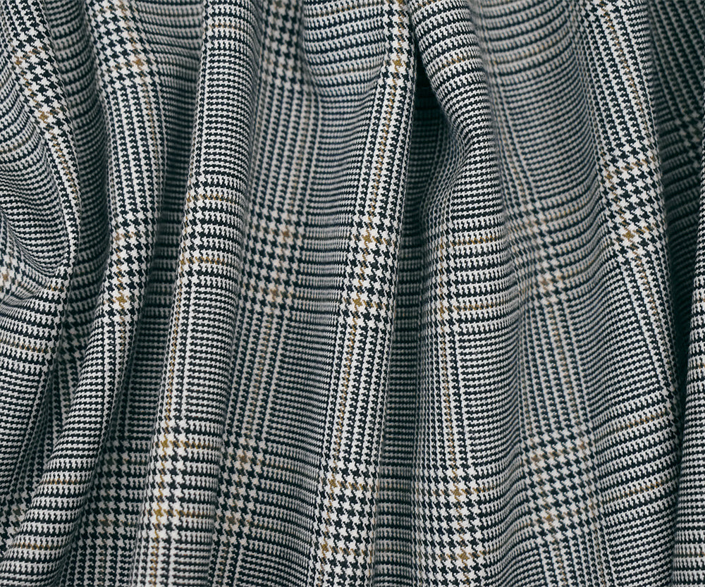 Black-Brown-White Polyester Wool Glen Plaid Woven Suiting Woven Fabric