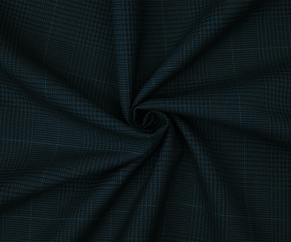 Black-Deep Teal-Multi Wool Polyester Glen Plaid Check Twill Suiting Fabric