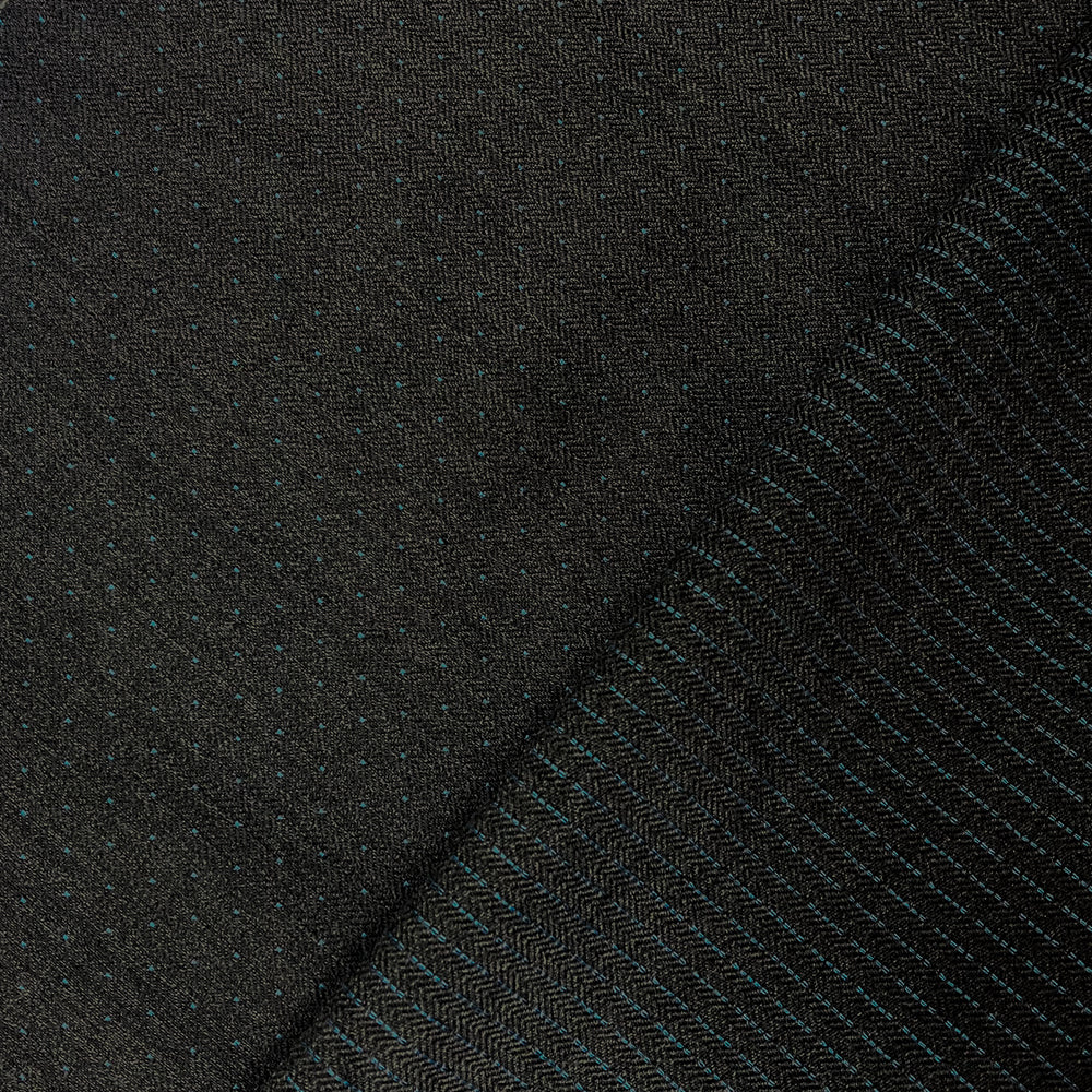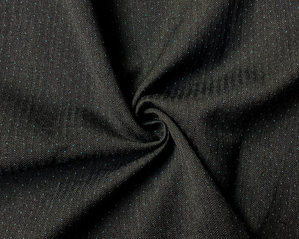 Black-Gray-Blue Wool Polyester Dobby Herringbone Woven Fabric