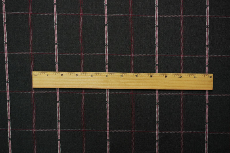Black-Red-Multi Poly Wool Plaid-Check Twill Woven Suiting Fabric