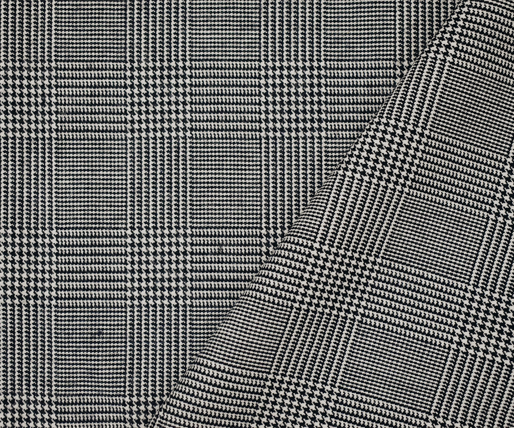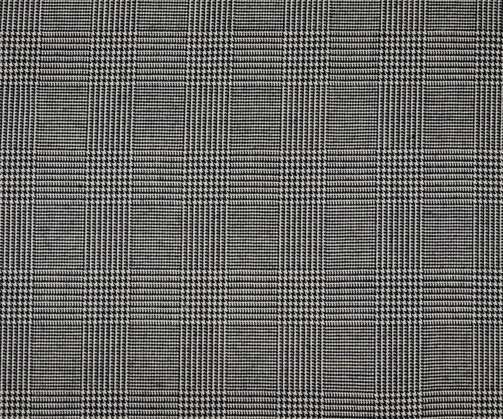 Black-White Wool-Polyester Glen Plaid Woven Suiting Fabric