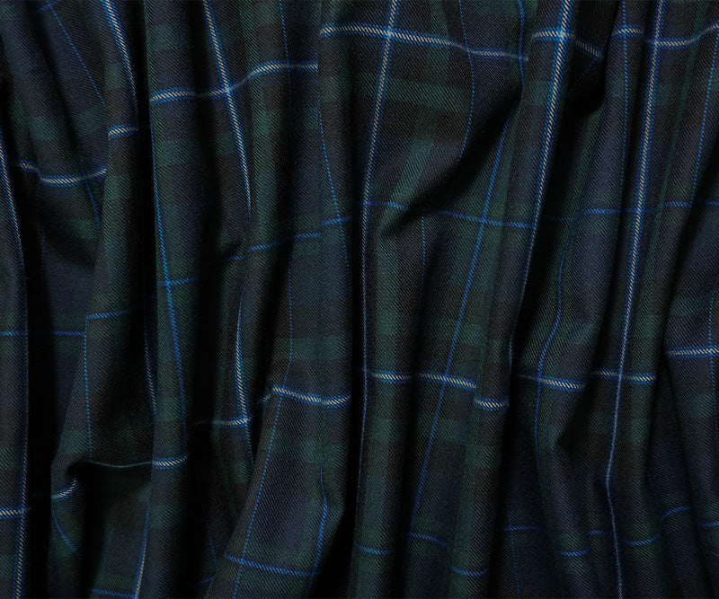 Blue-Multi Wool Poly Plaid Japanese Twill Woven Suiting Fabric