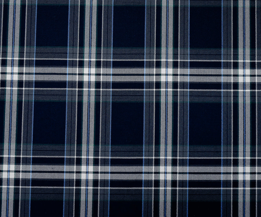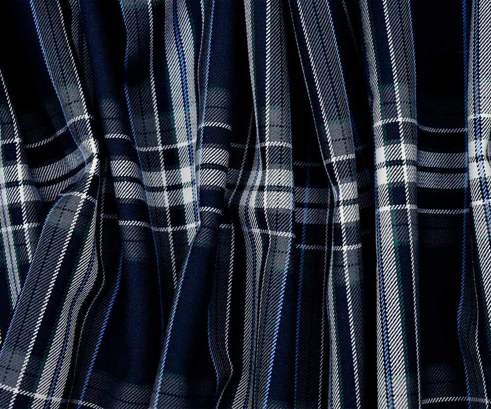 Dark Navy Blue-White-Multi Poly-Wool Plaid Twill Suiting Woven Fabric