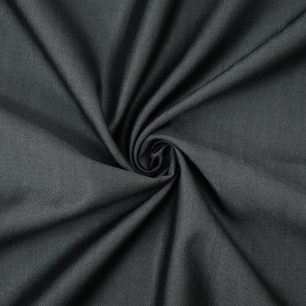 Gray-Black Wool-Polyester Irregular Herringbone Shirting Fabric