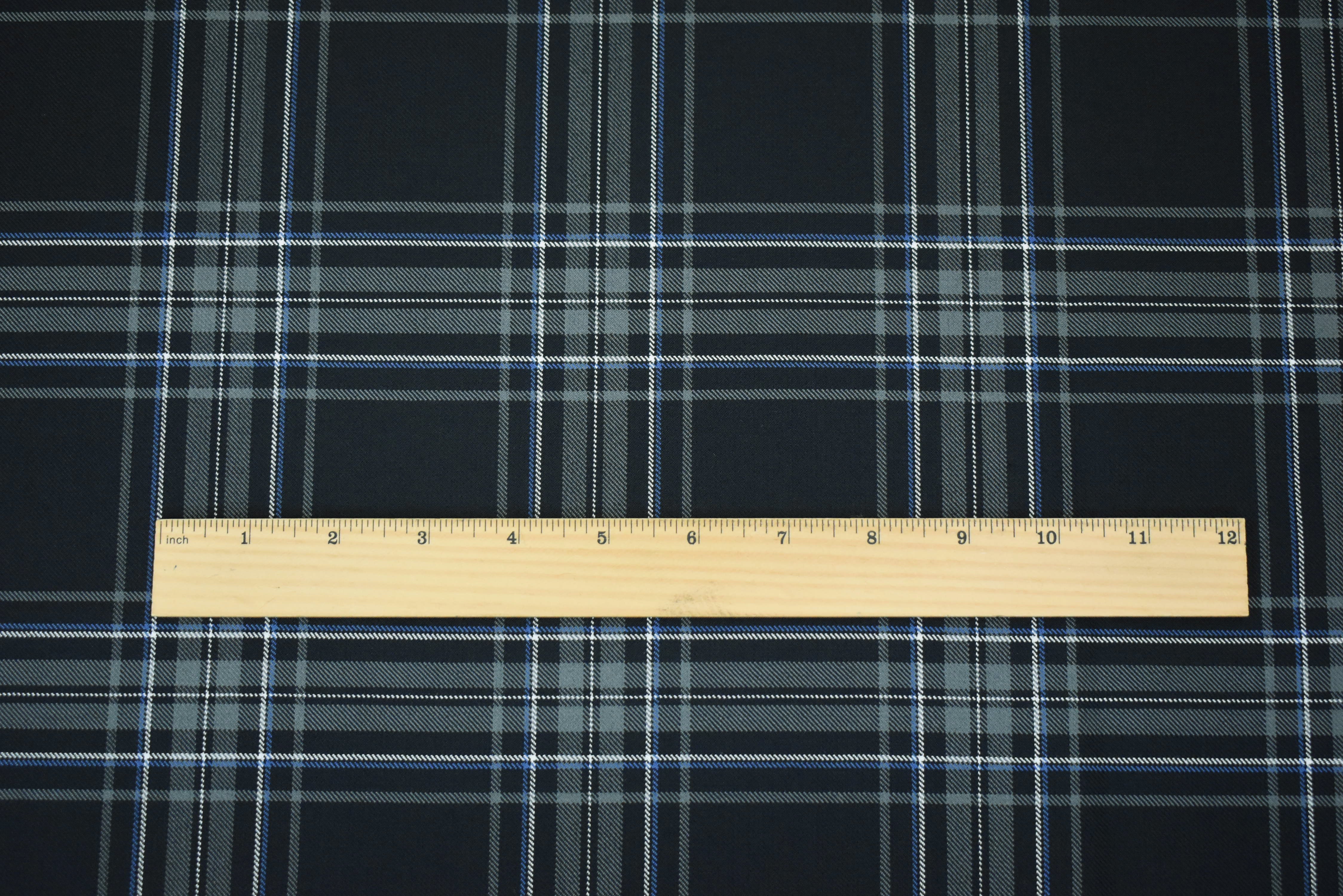 Gray-Blue-Multi Wool Polyester Plaid Twill Suiting Woven Fabric