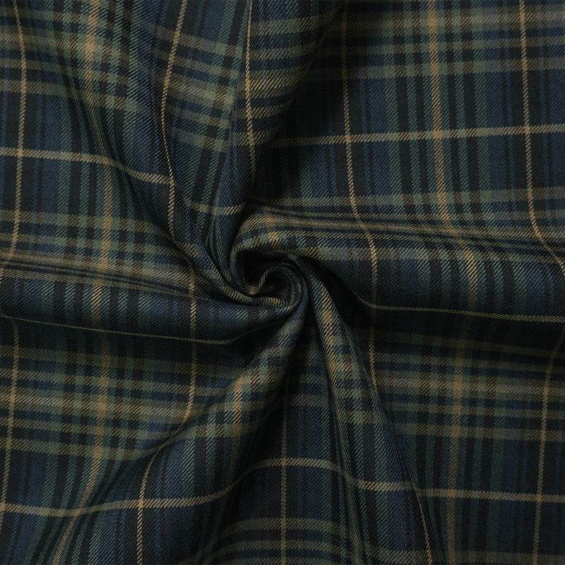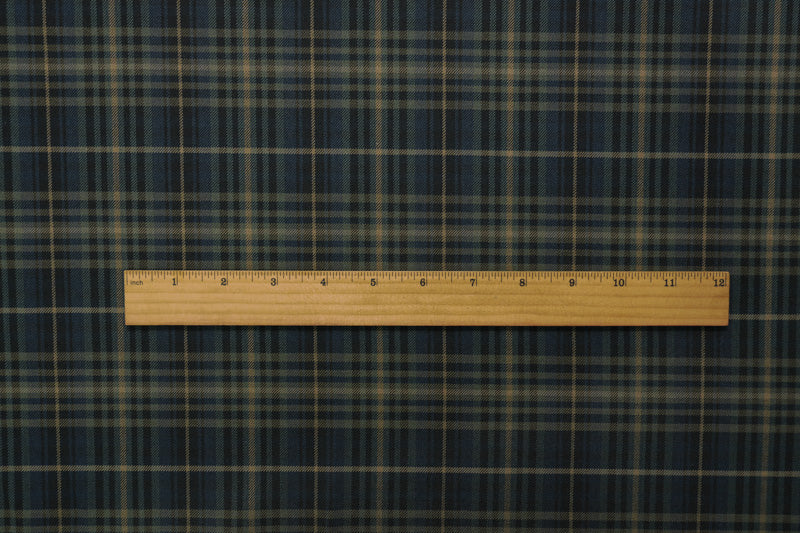 Green-Multi Wool Poly Plaid Twill Japanese Woven Suiting Fabric