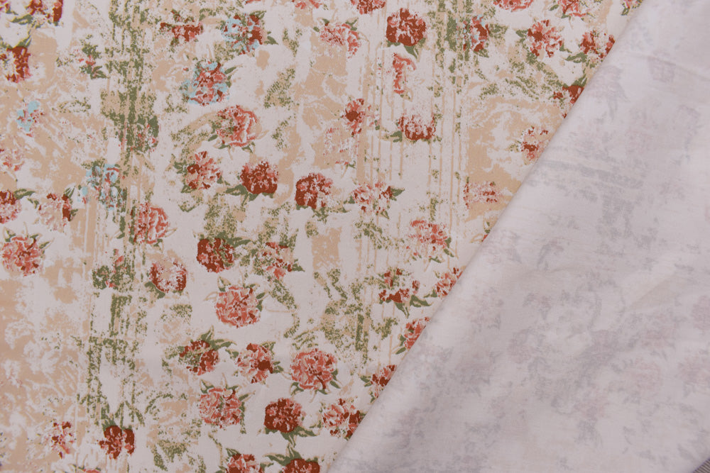 Peach-Multi Floral Texture Printed Stretch Twill Sateen Woven Fabric