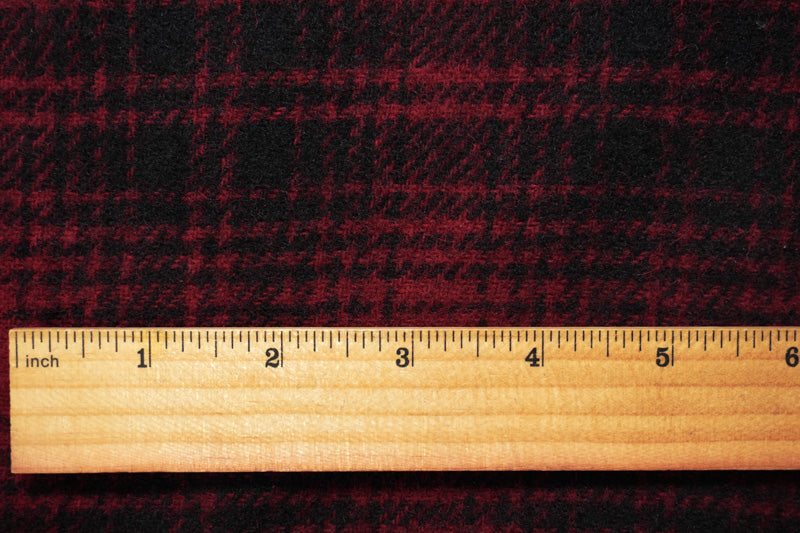 Red-Black Wool Plaid Double Brushed Twill Woven Jacketing Fabric