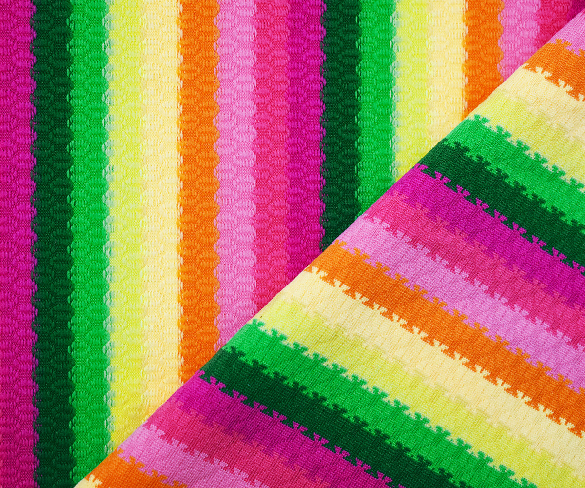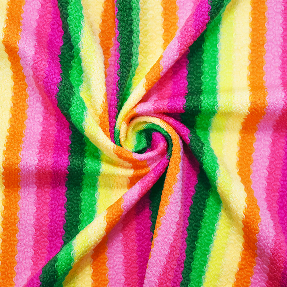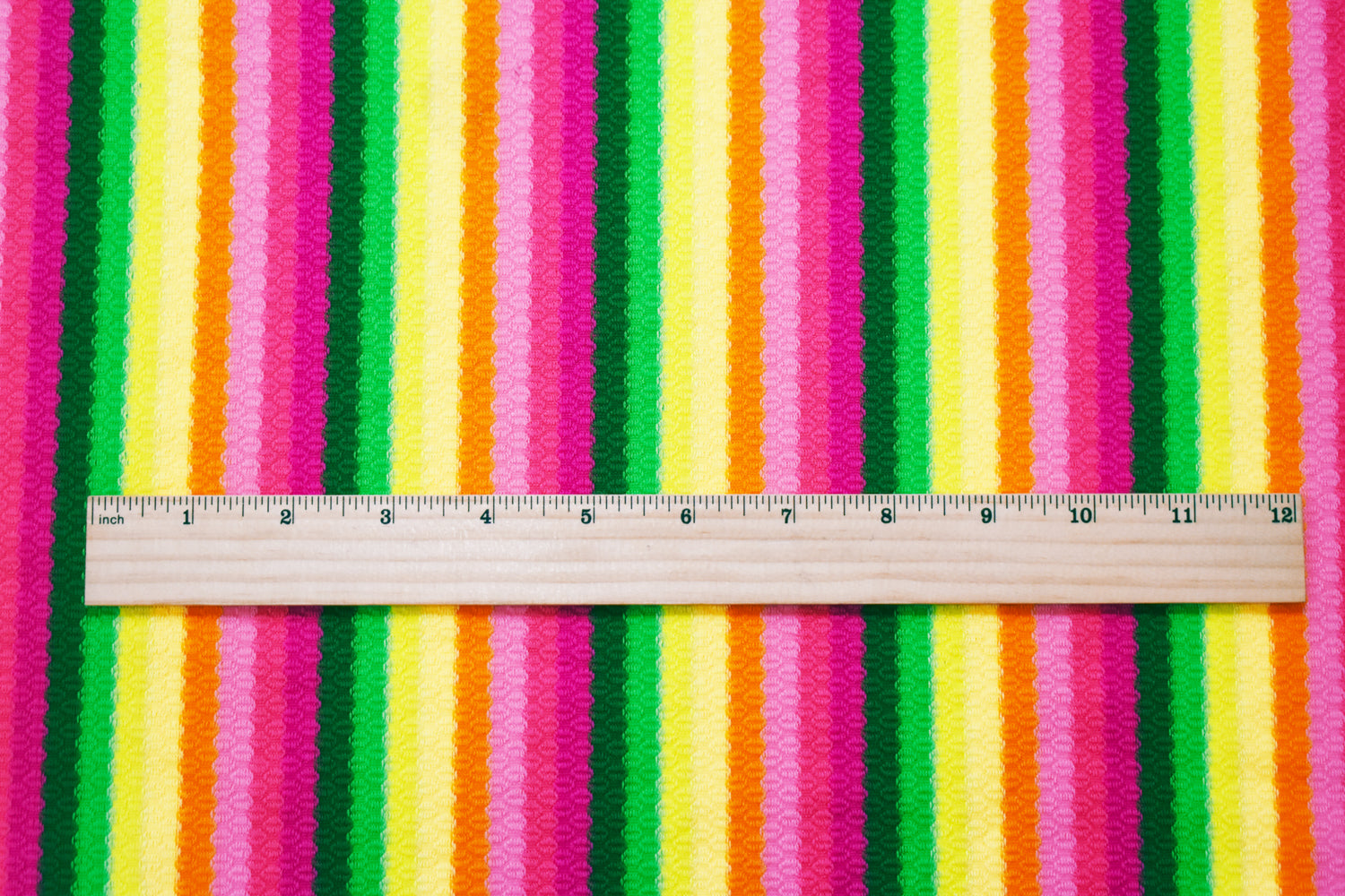 1 1/4 YD PC-Green-Pink-Multi Poly Stretch Stripe Spandex Double Knit Fabric