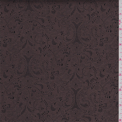 Black Metallic Flocked paisley look print on Brown Light weight Ultrasuede fabric. Perfect for apparel and home decorating.