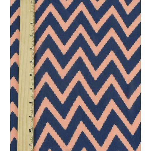 2 YD PC-Navy Blue/Peach Chevron Print Chiffon Fabric
