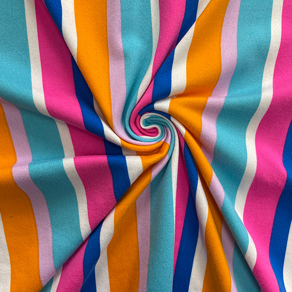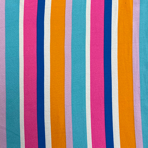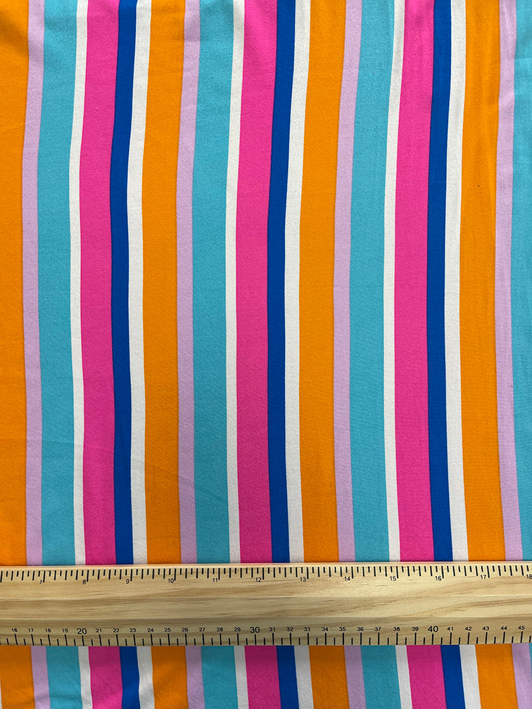 2 YD PC -Orange, Lavender, Turquoise, White, Neon Pink, & Royal Blue Uneven Vertical Print Stripe Double Brushed Knit Fabric