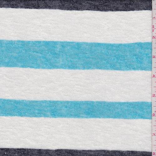 2 YD PC-White/Turquoise/Black Stripe Slubbed Sweater Knit Fabric