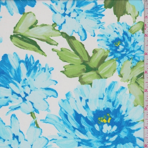 3 5/8 YD PC-Bright Blue/White Floral Mum Chiffon Fabric