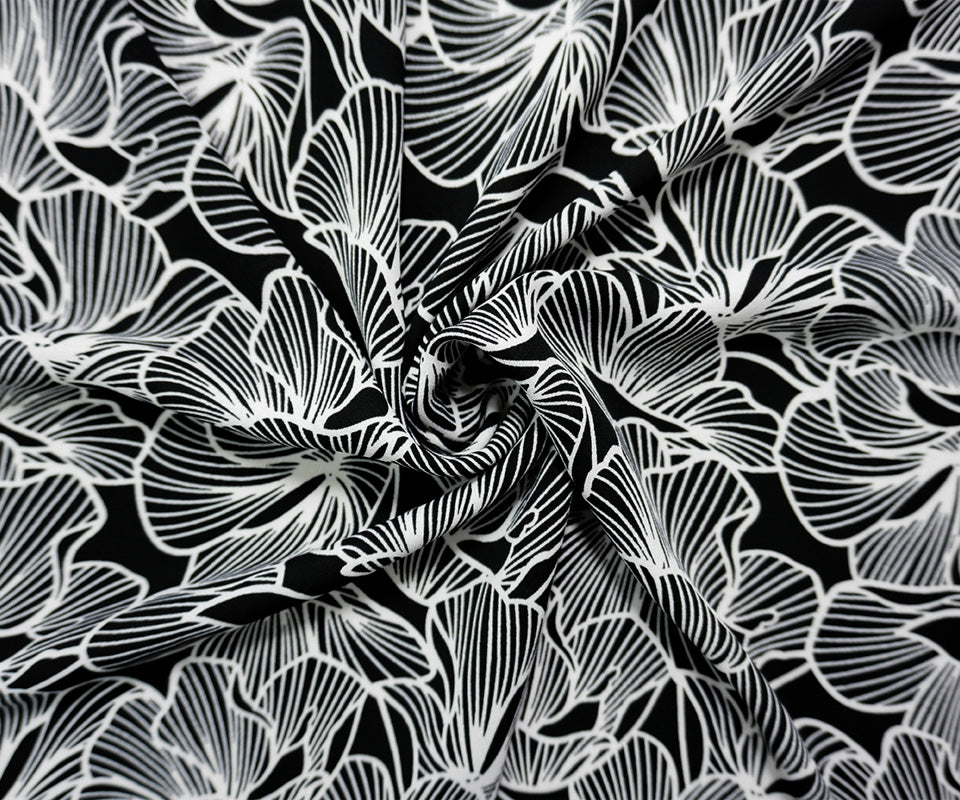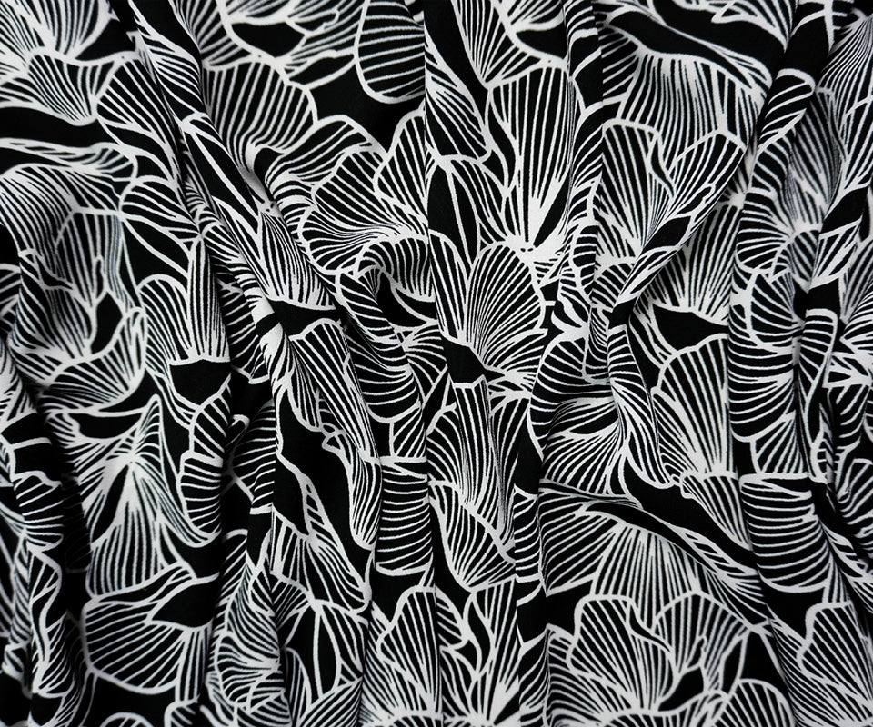 Black-White Poly Floral Printed Georgette Woven Fabric