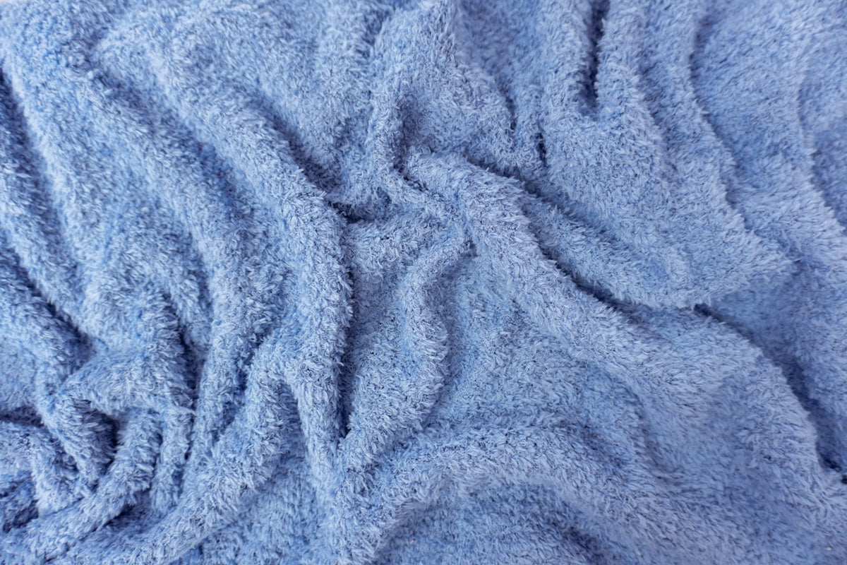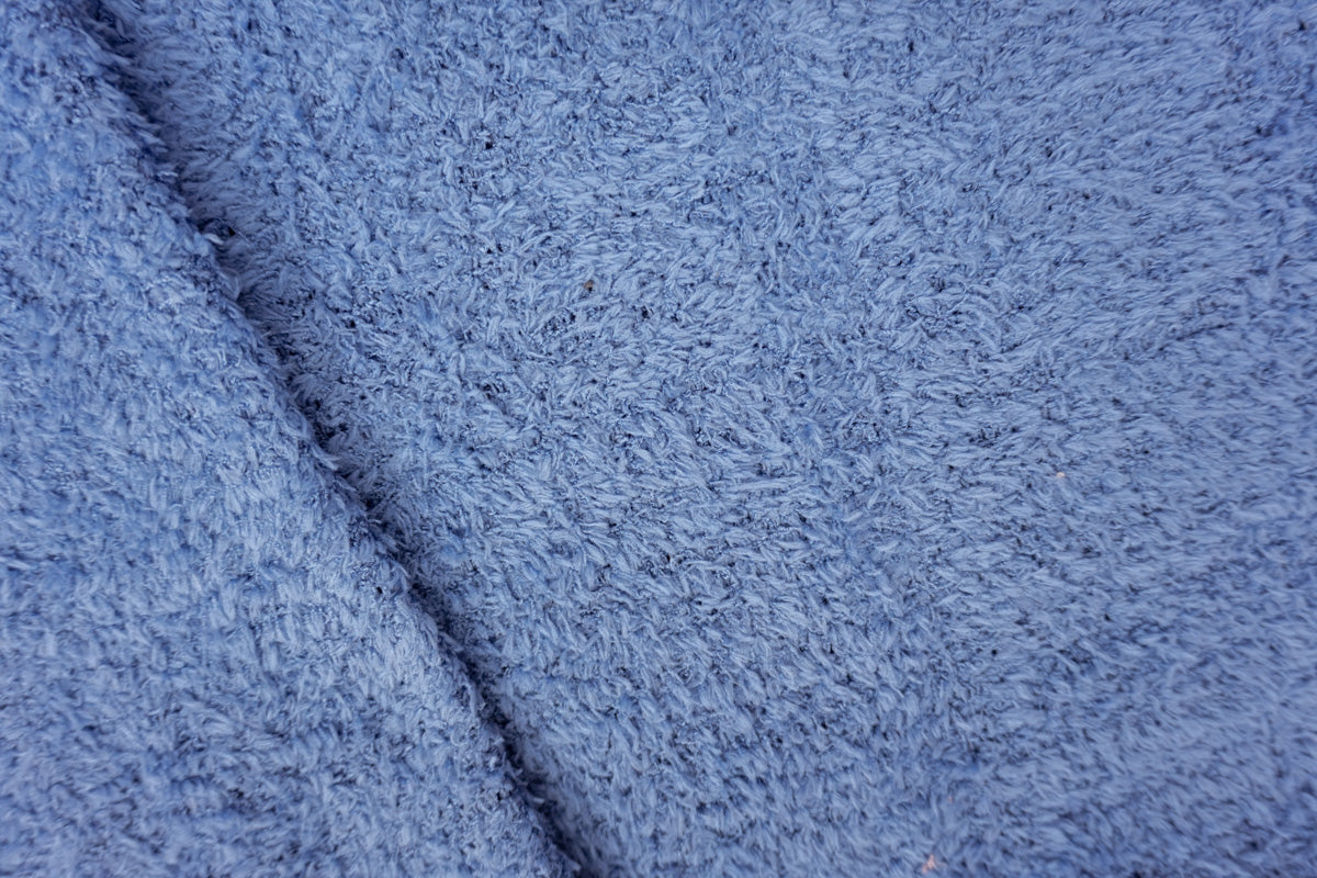Blue Poly Spandex Stretch Solid Curly Teddy Fleece Knit Fabric