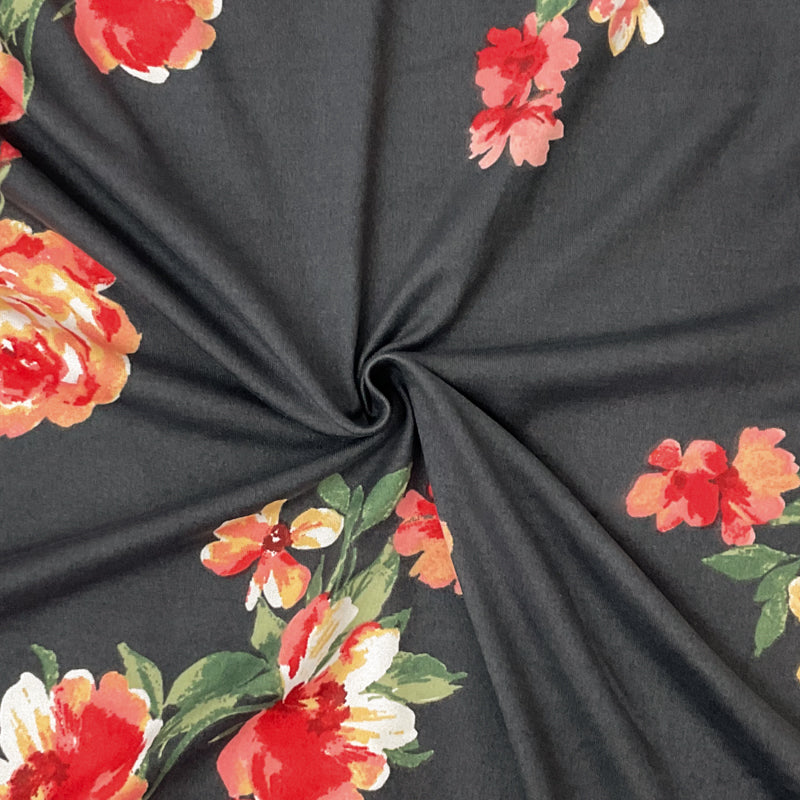 Deep Gray-Multi Poly Stretch Floral Print DB Jersey Knit Fabric
