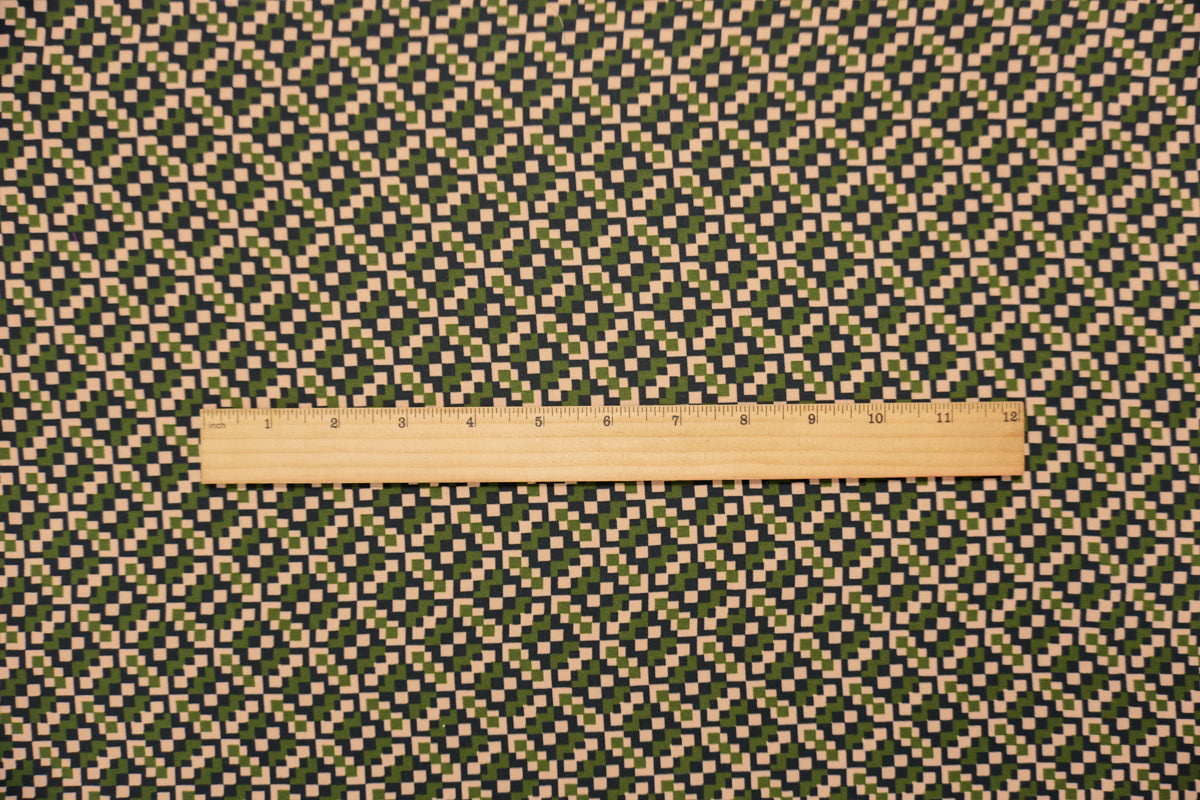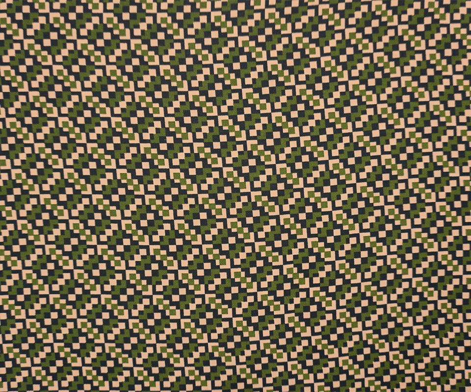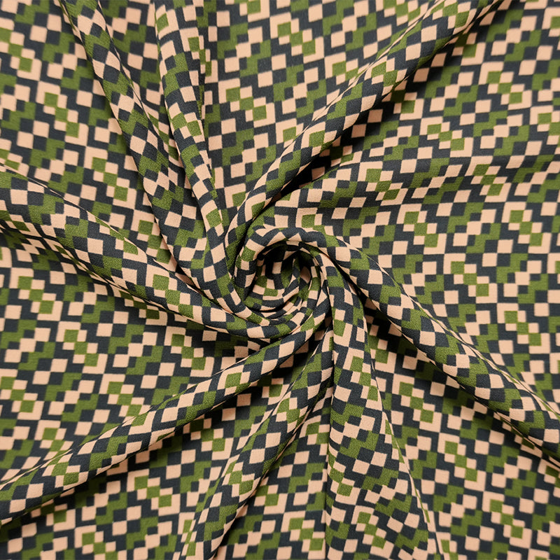 Green-Multi Poly Geometry Pixel Printed Georgette Woven Fabric