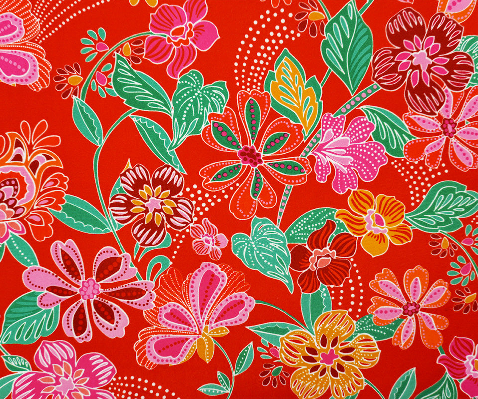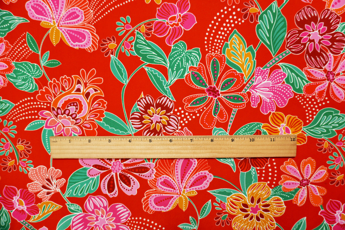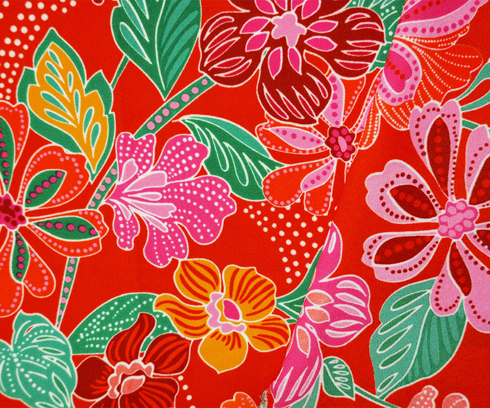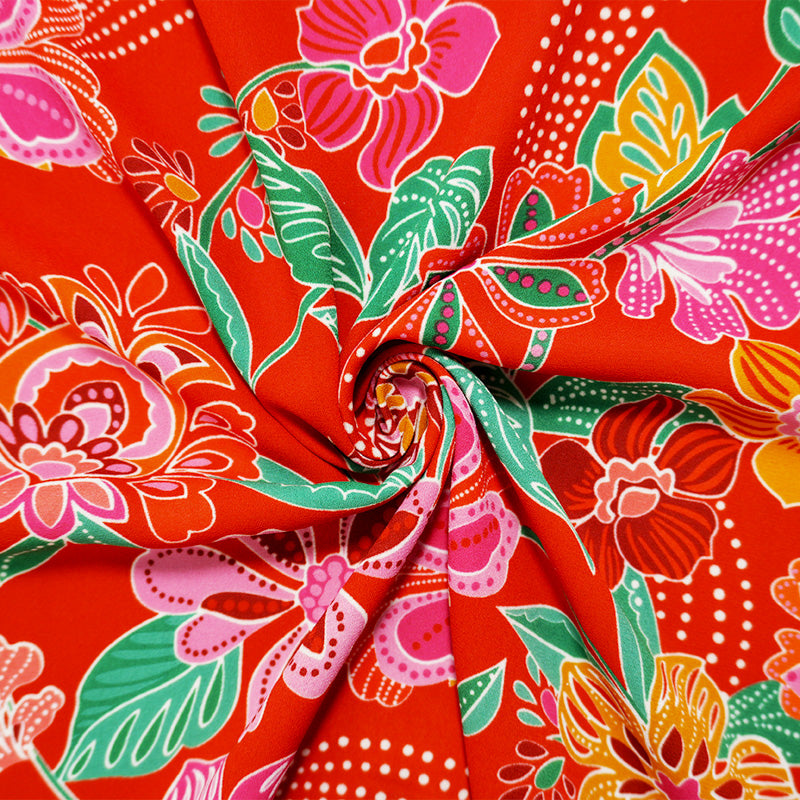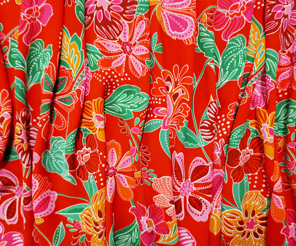 Red-Green-Multi Poly Floral Printed Georgette Woven Fabric