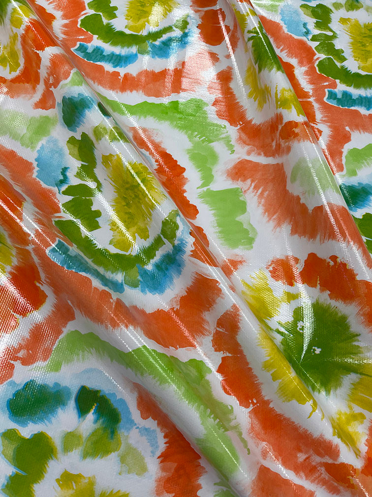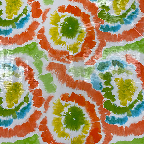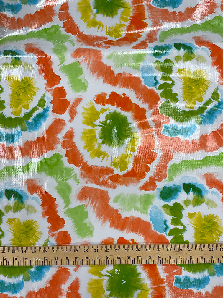 Orange Multi Tie Dye Print on White Oilcloth Fabric