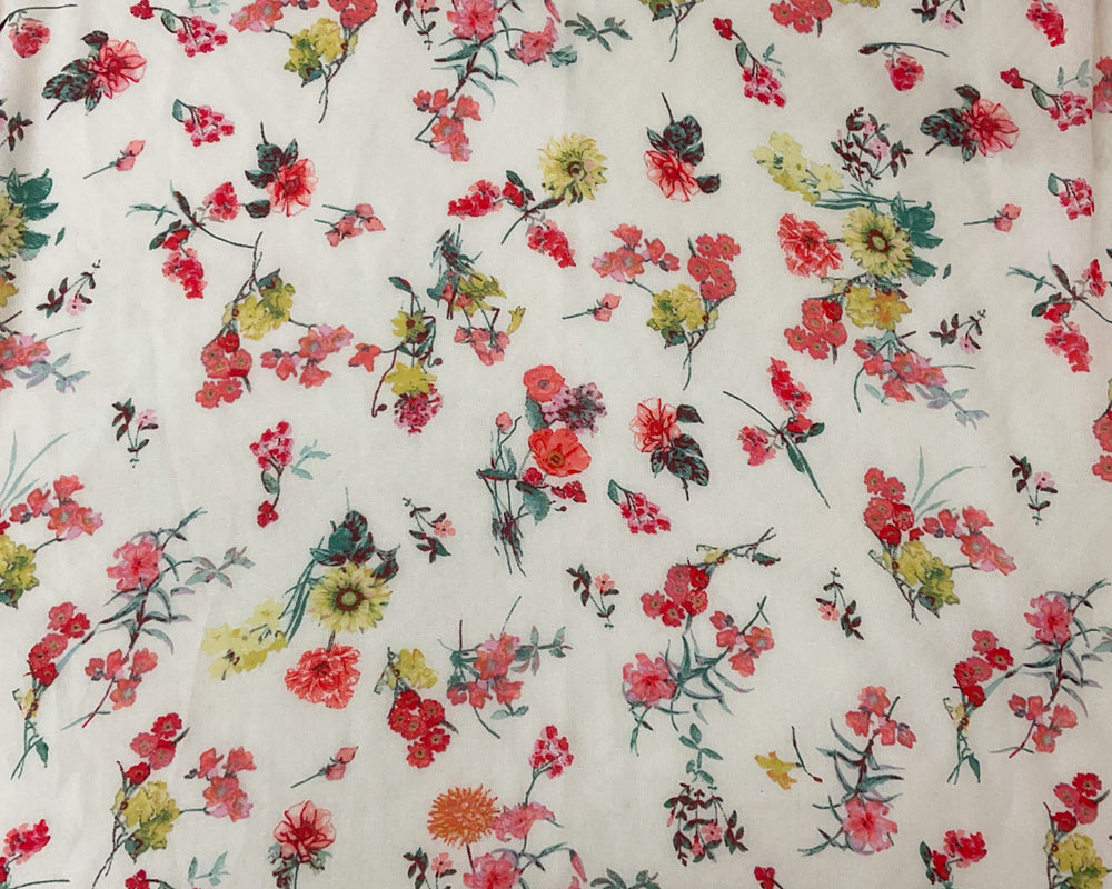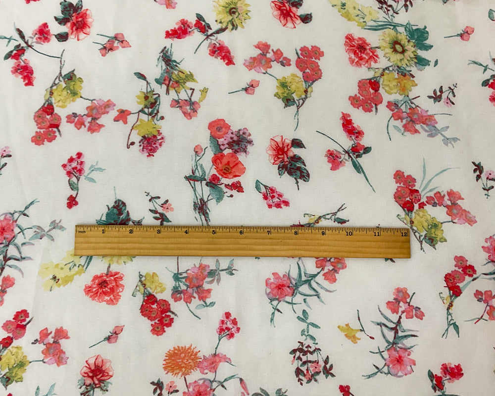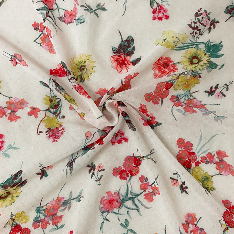 -Gray-Red-Multi Poly Floral Printed Dobby Chiffon Woven Fabric